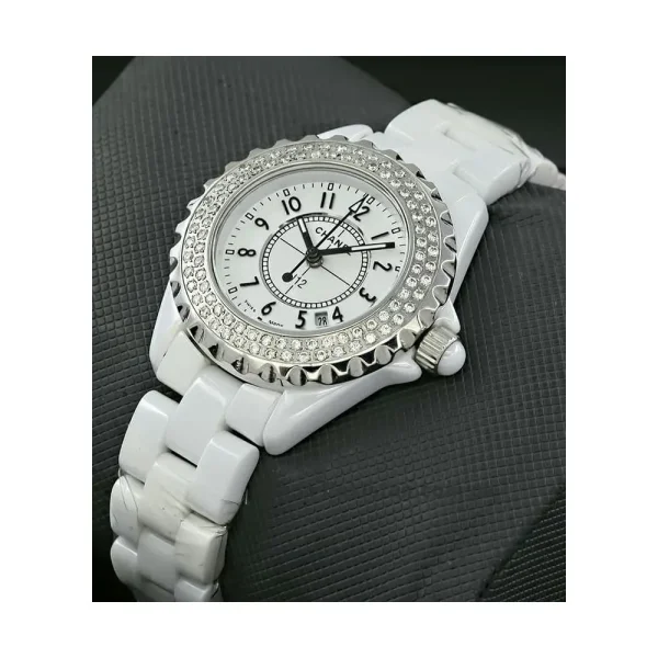 Chic Chanel J12 White Ceramic Diamond Bezel Watch