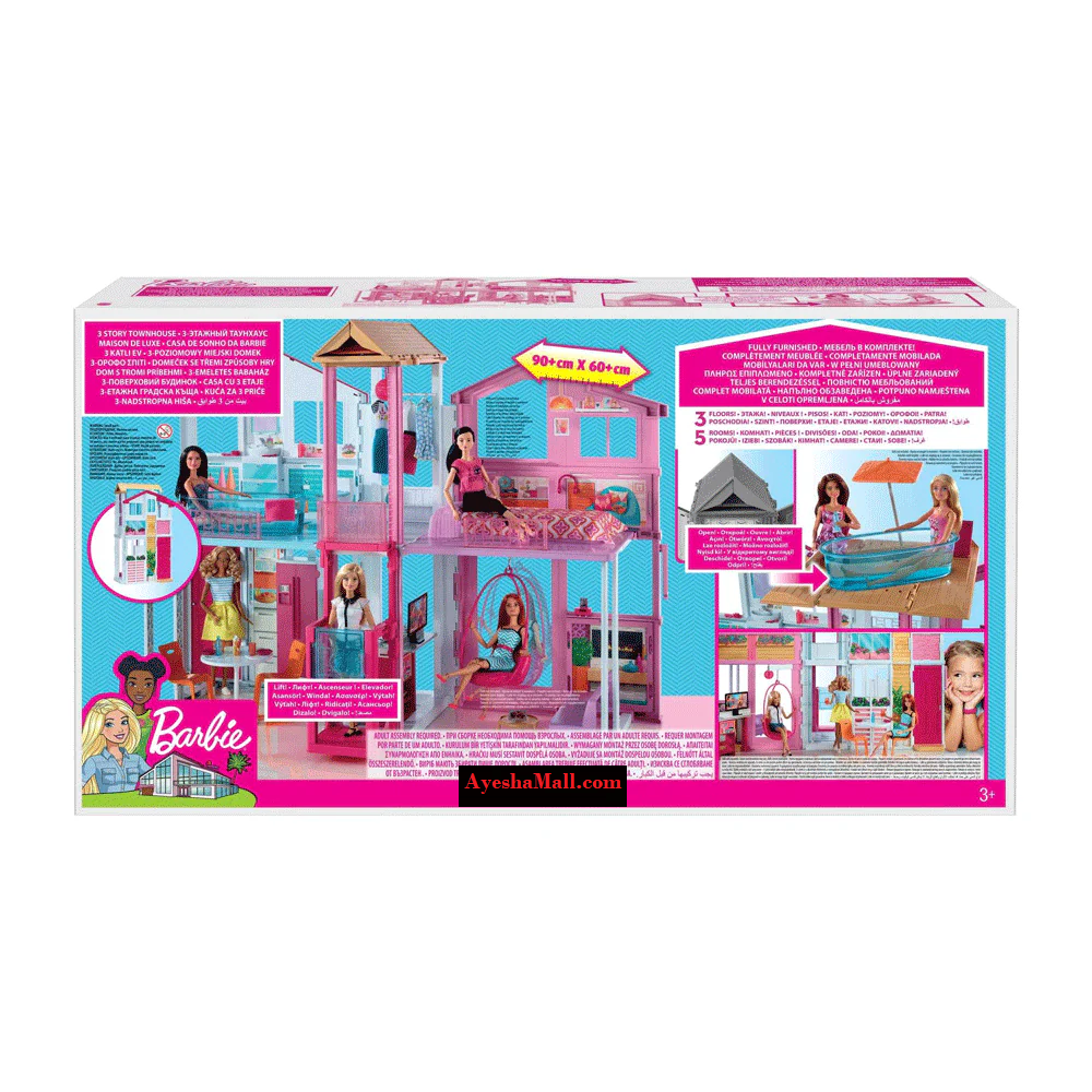 Open the doors to imaginative city living with the DreamVista Barbie Townhouse Playset – DLY32.