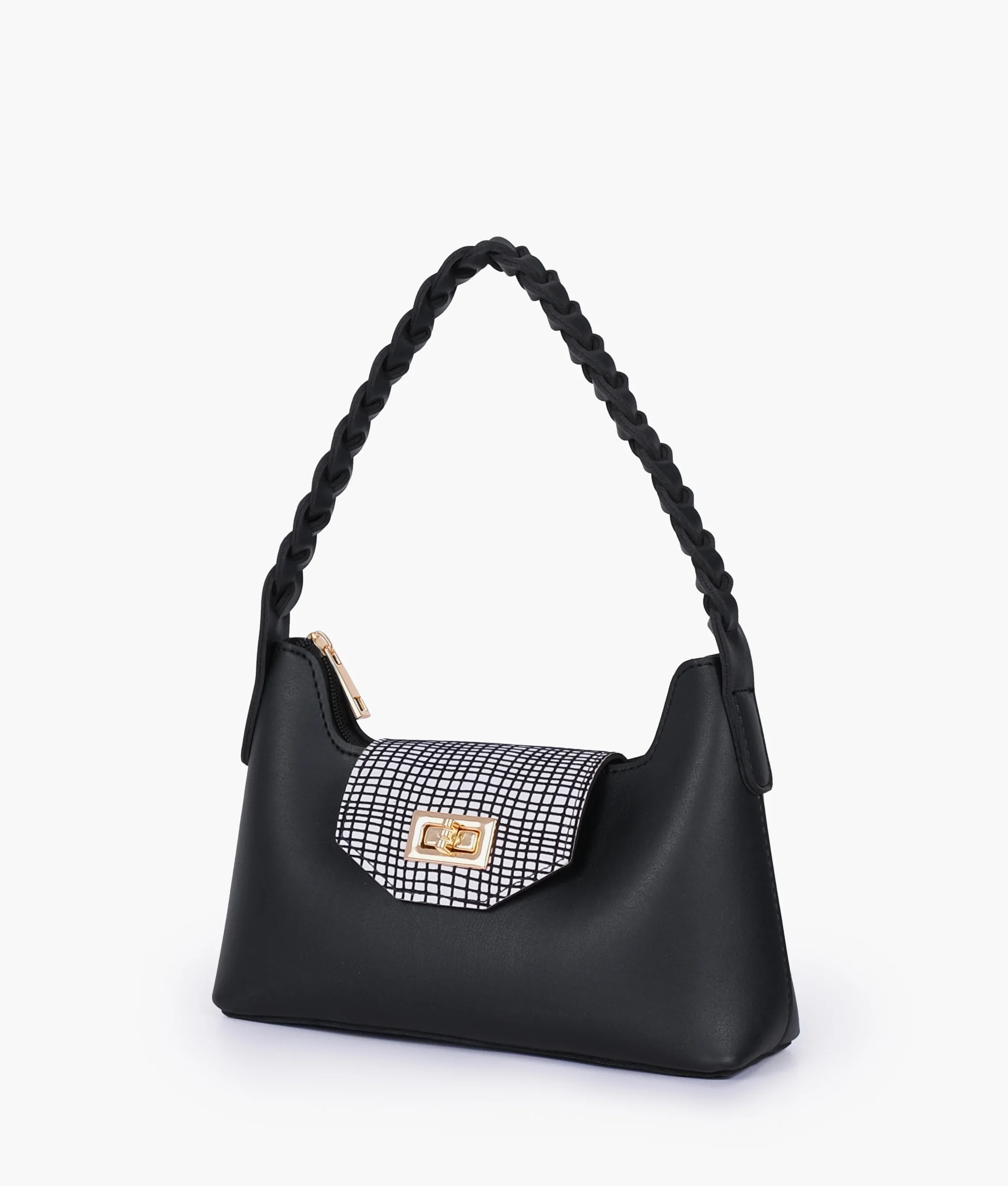The Black and White Purse with Braided Strap transitions easily from day to night.