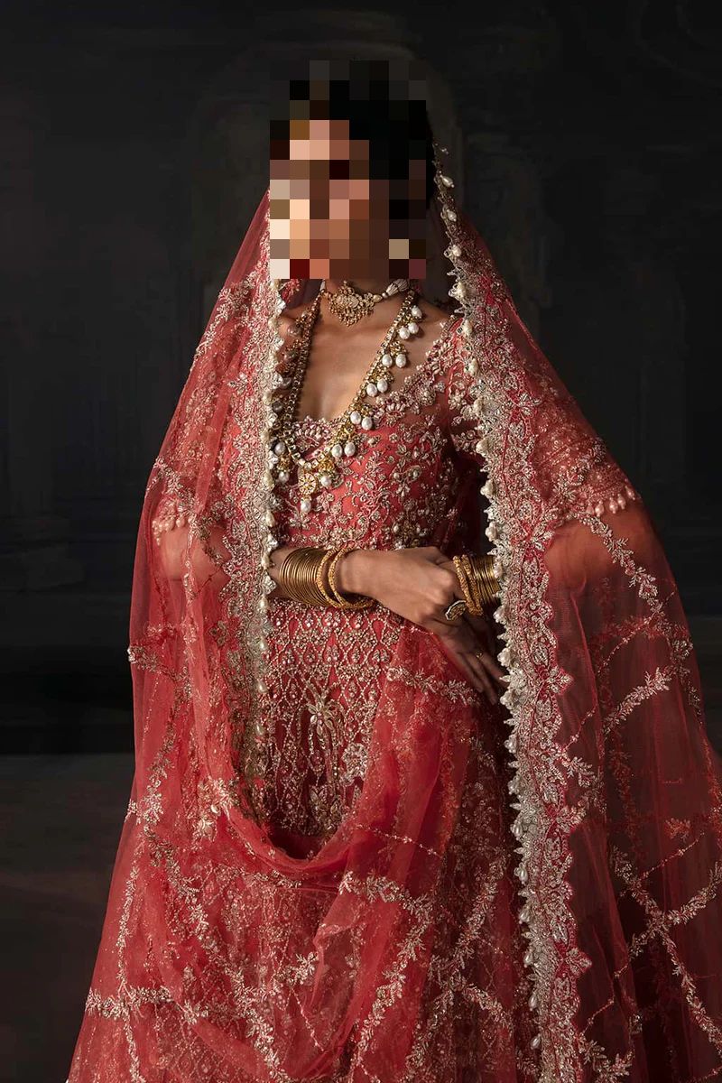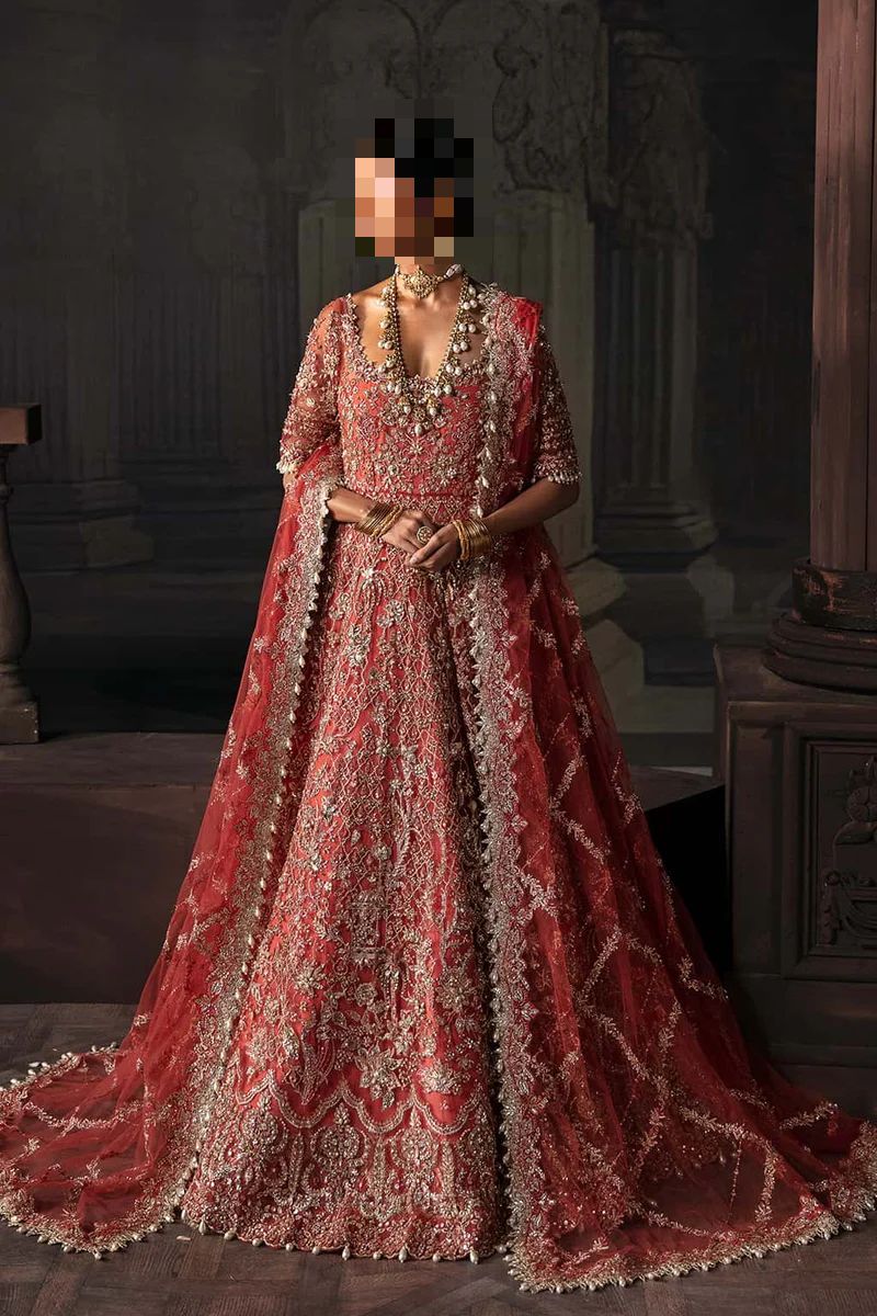 Ayesha’s Graceful Rust Bridal Dress radiates breathtaking ceremony through its rich rust hue and refined artistry.