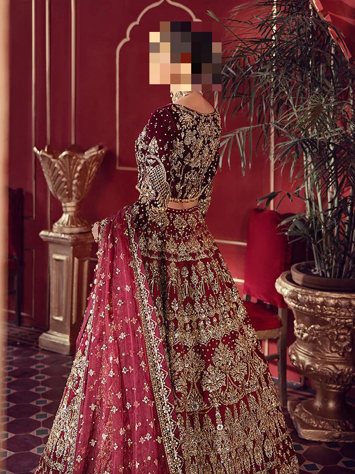 In Ayesha’s Lavish Burgundy Bridal Dress, this hue appears rich and dignified.