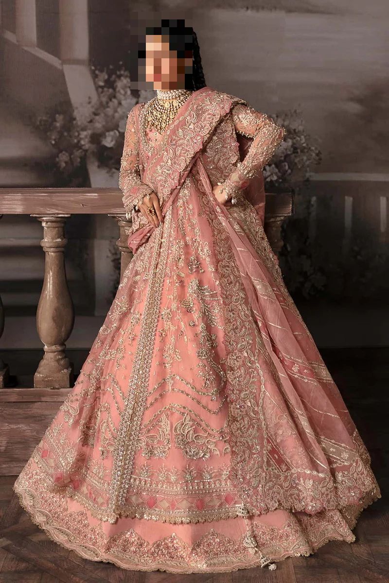 Ayesha’s Vintage Blush Bridal Dress uses organza embroidery as the hero feature.