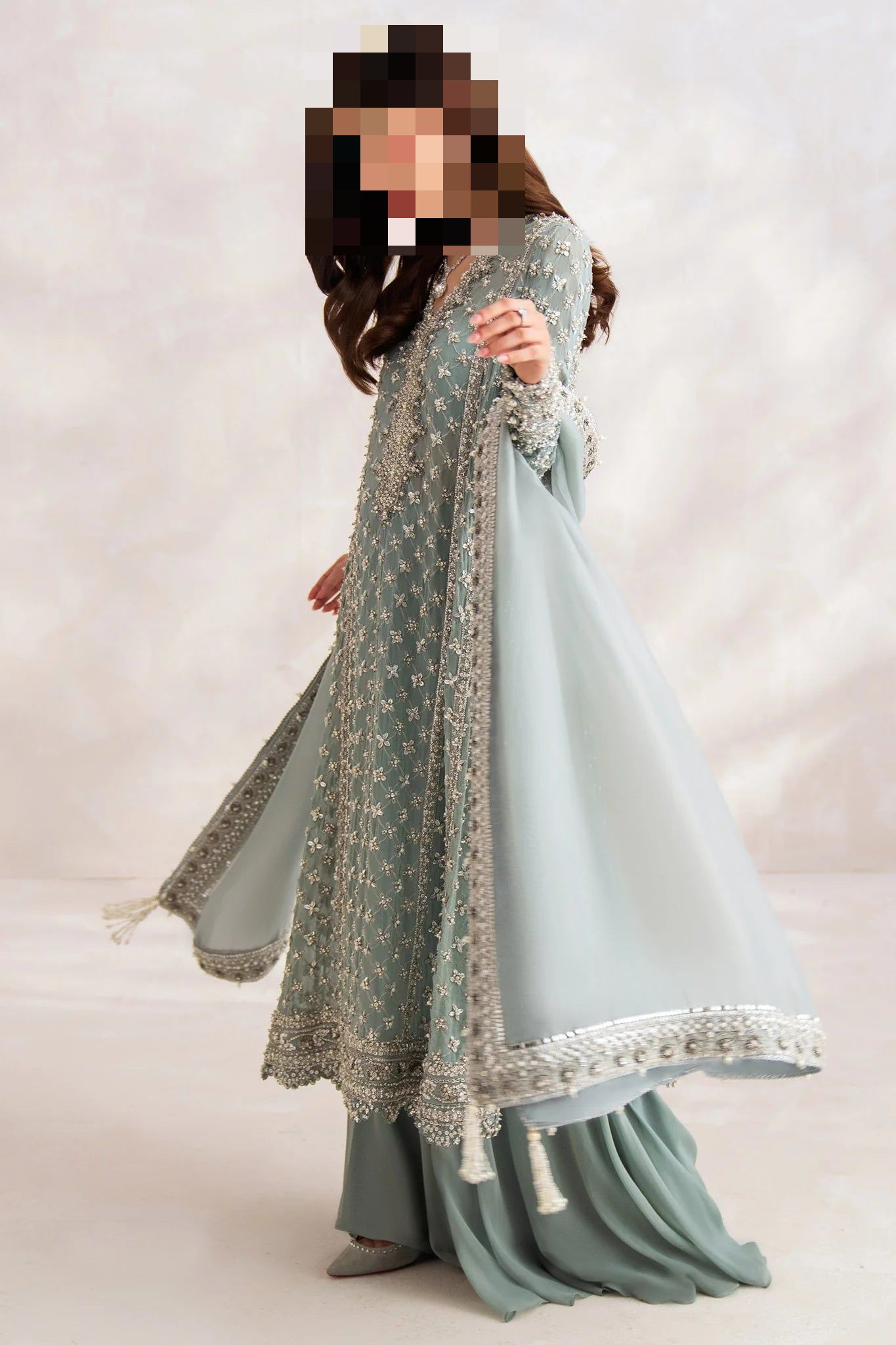 Ayesha’s Glamorous Mint Green Party Dress delivers a striking impression with its soft yet radiant mint green tone.