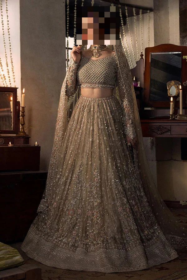 Ayesha’s Regal Beige Gold Party Dress earns its place through thoughtful ornamentation, layered texture, and a color story that feels both elevated and timeless.