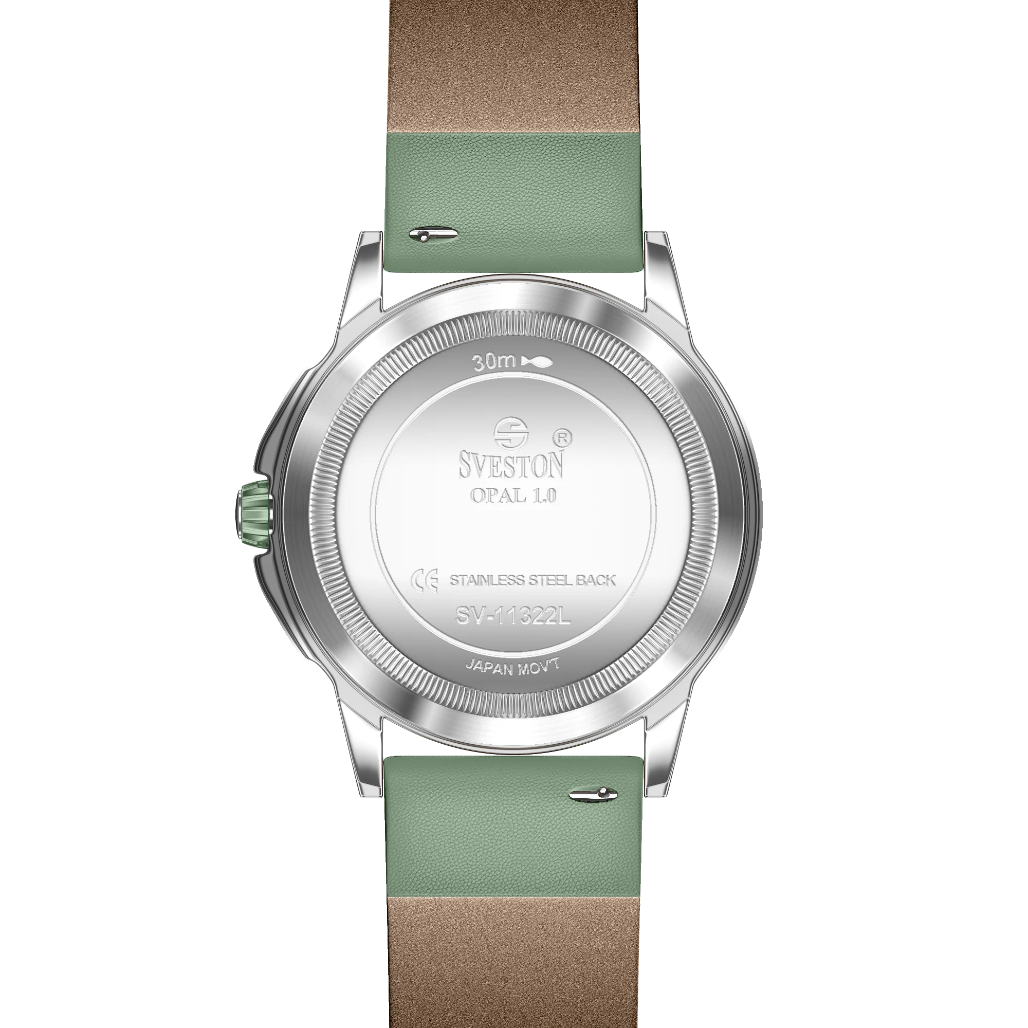 Inside, the Chic Sveston Opal 1.0 Watch — 001 uses a battery-powered three-hand Japanese quartz movement, delivering precise timekeeping without fuss.