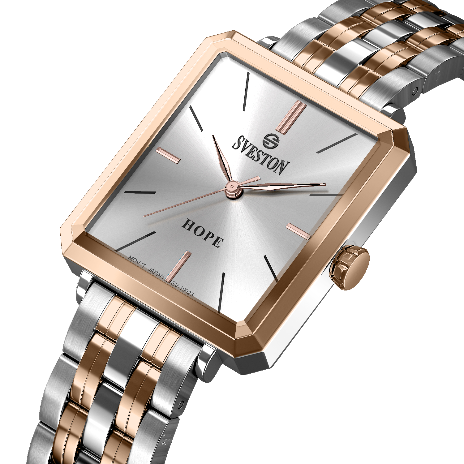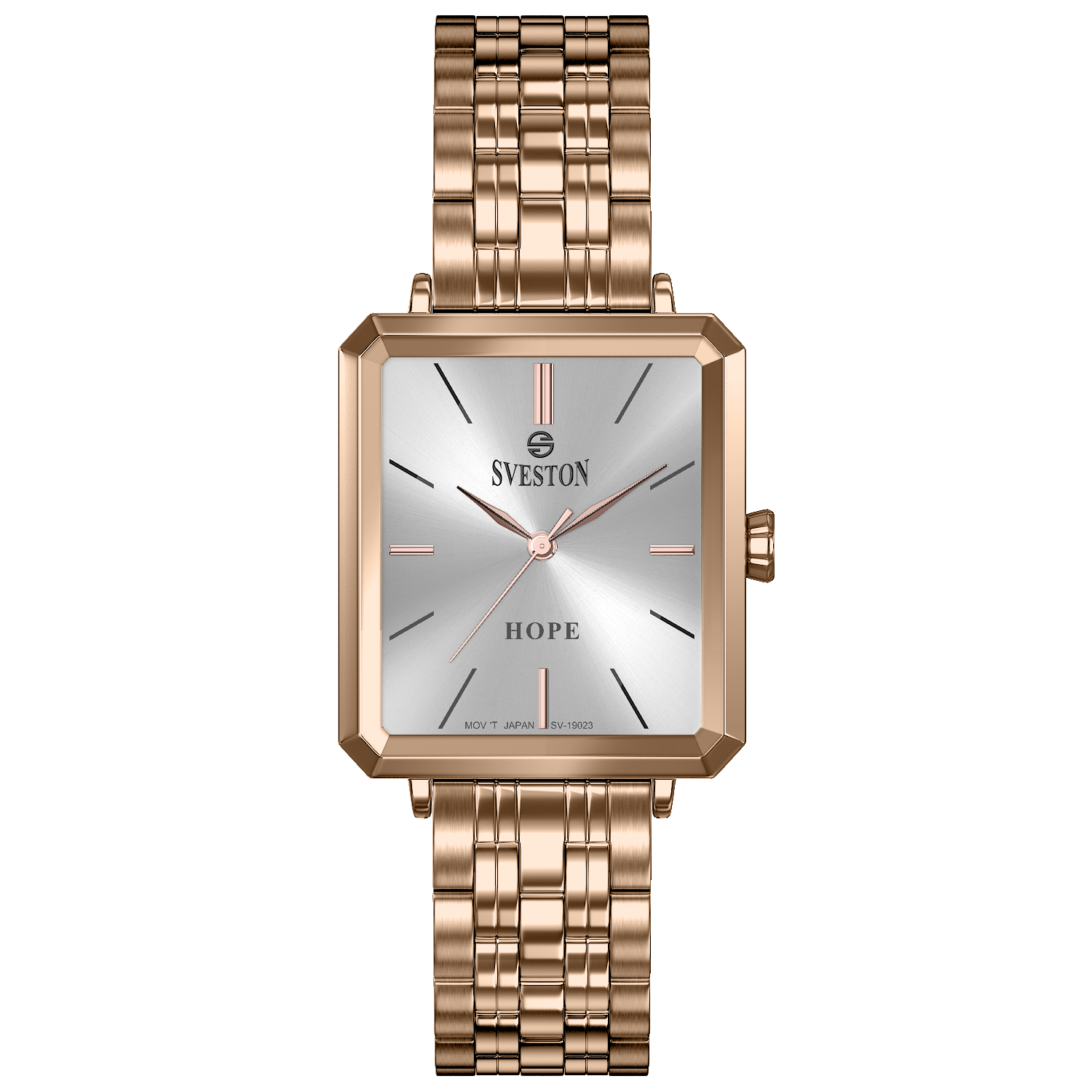 Inside the Exclusive Sveston SV-19023 Women Watch is a battery-powered three-hand Japanese quartz movement.