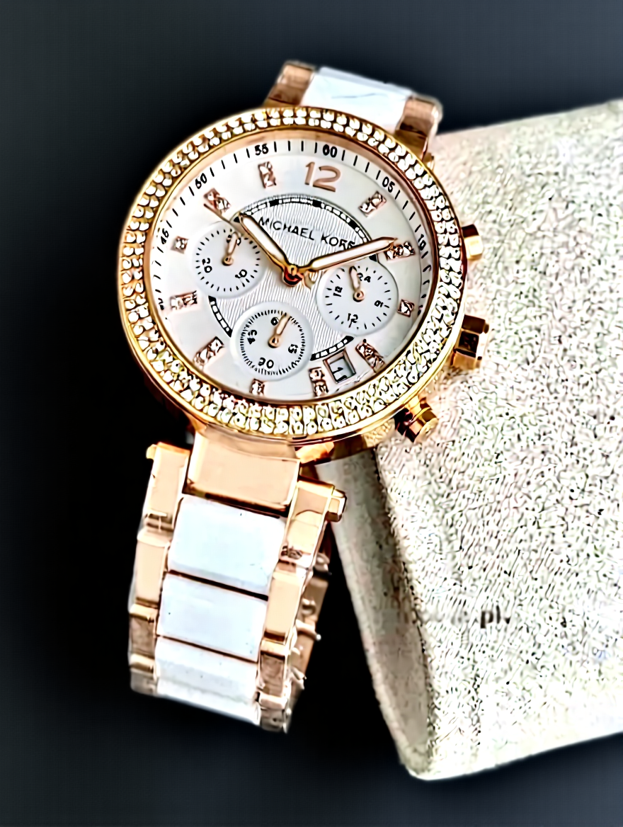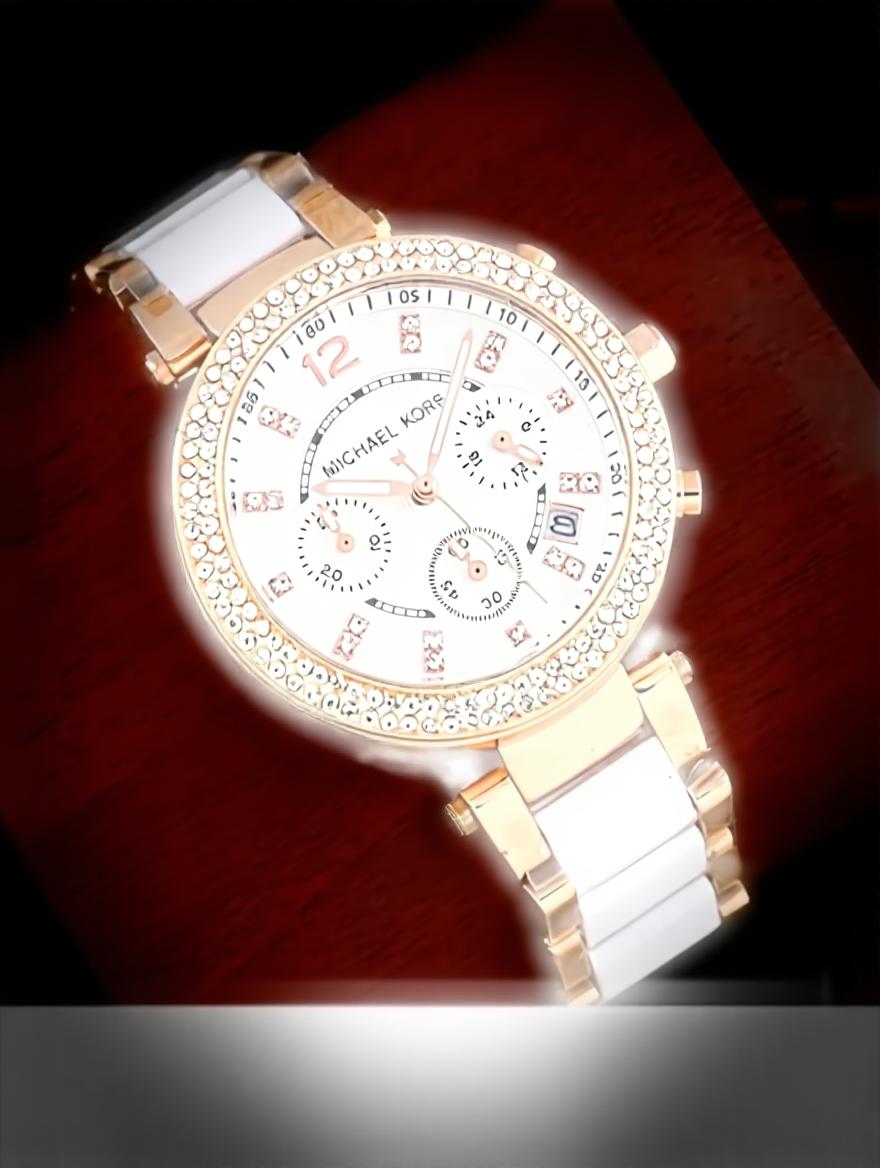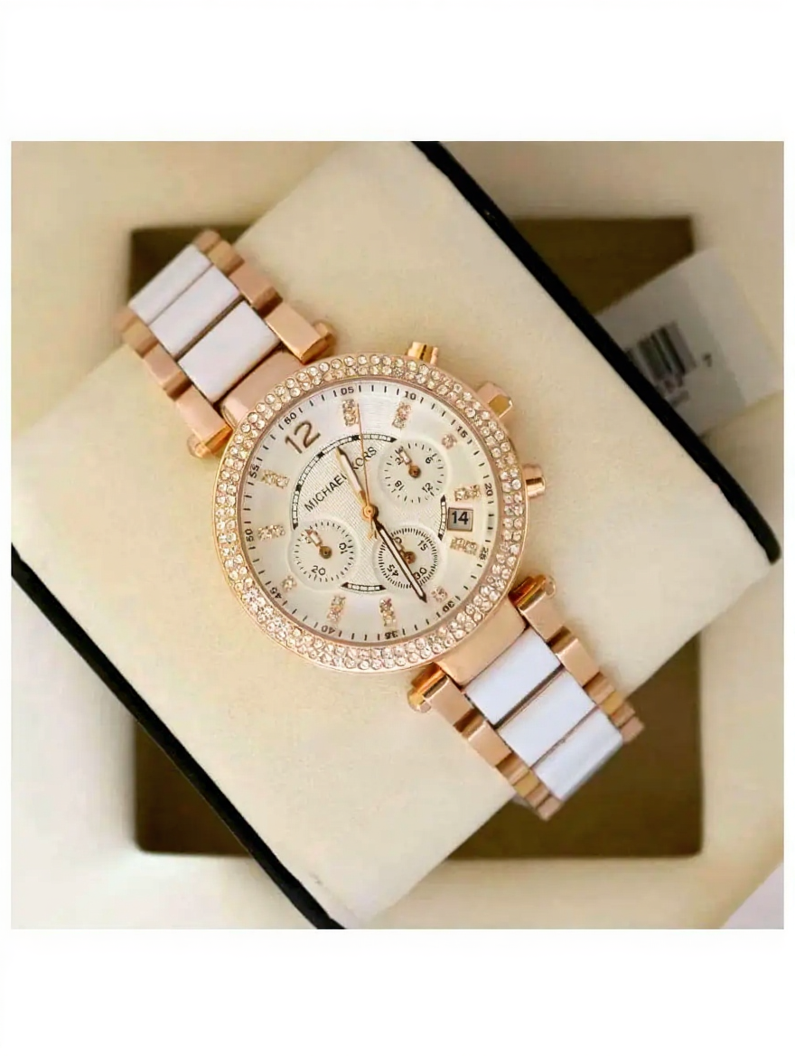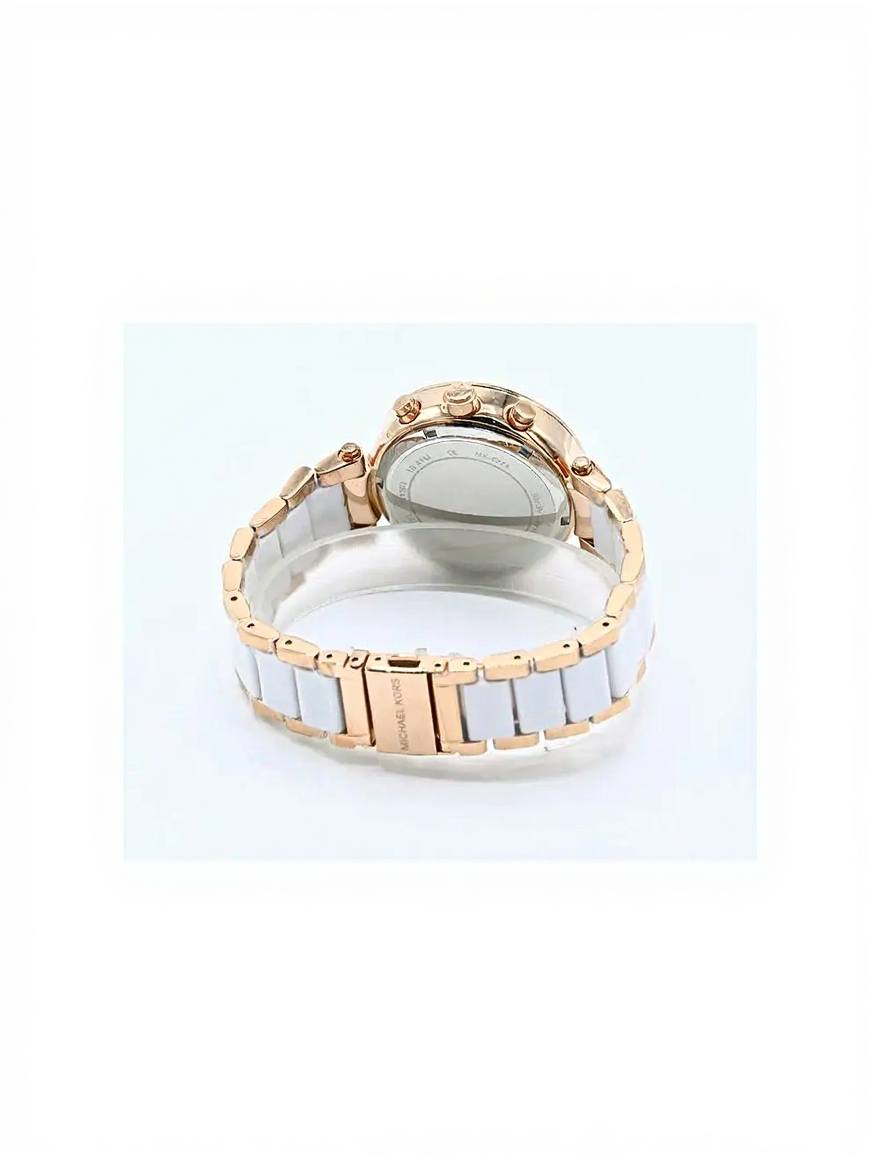 The two-tone combination of rose gold and white stainless steel allows the Luxurious Michael Kors MK5774 Womenโs Watch to pair effortlessly with different jewelry styles.