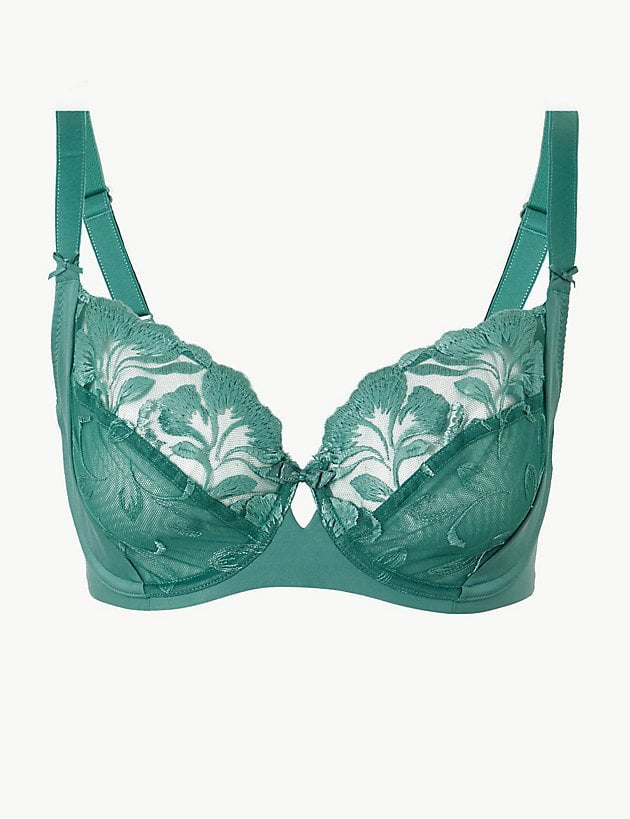 The Olivia Embroidered Non-Padded Balcony Bra features intricate floral embroidery that adds charm and elegance.